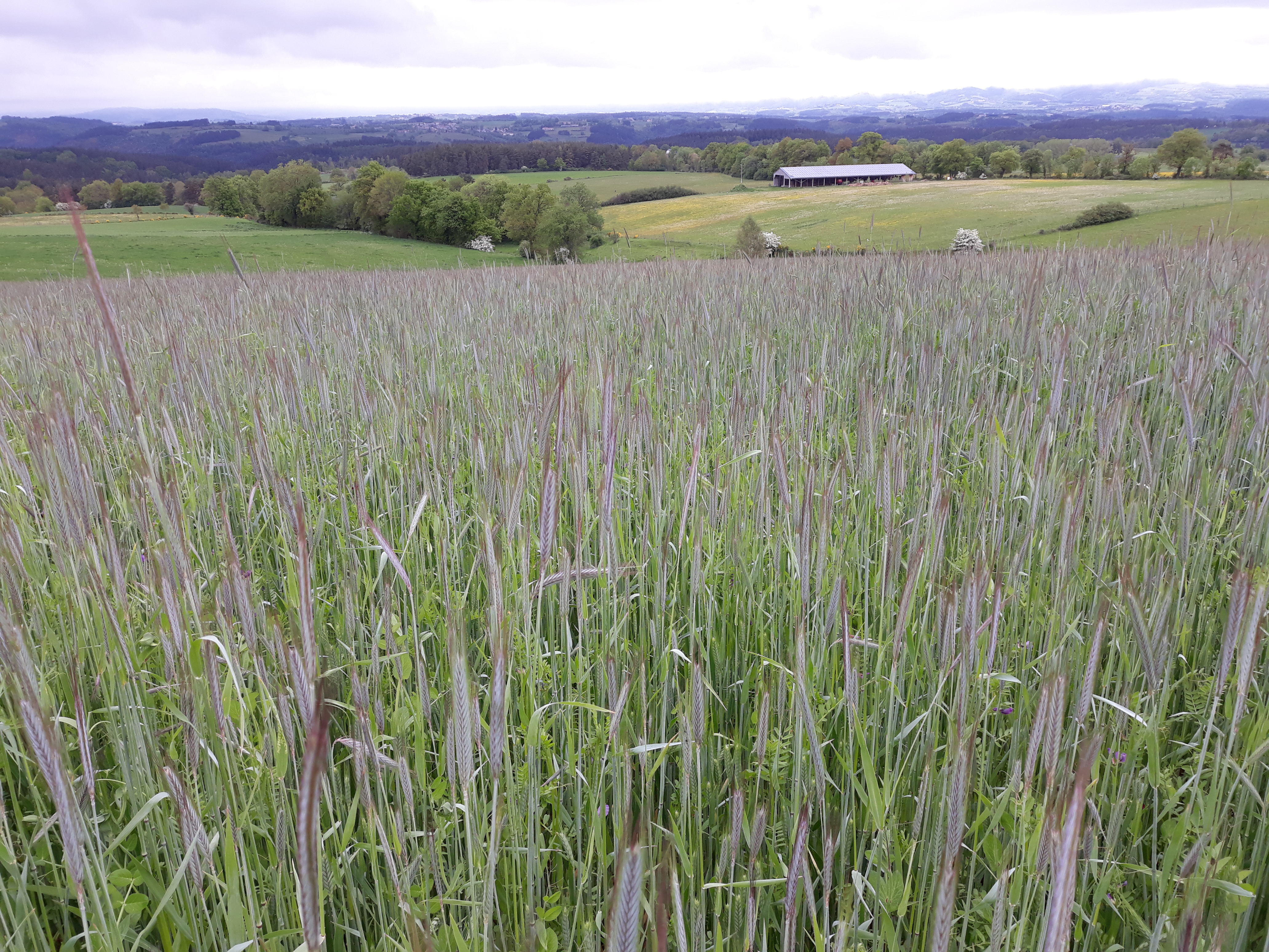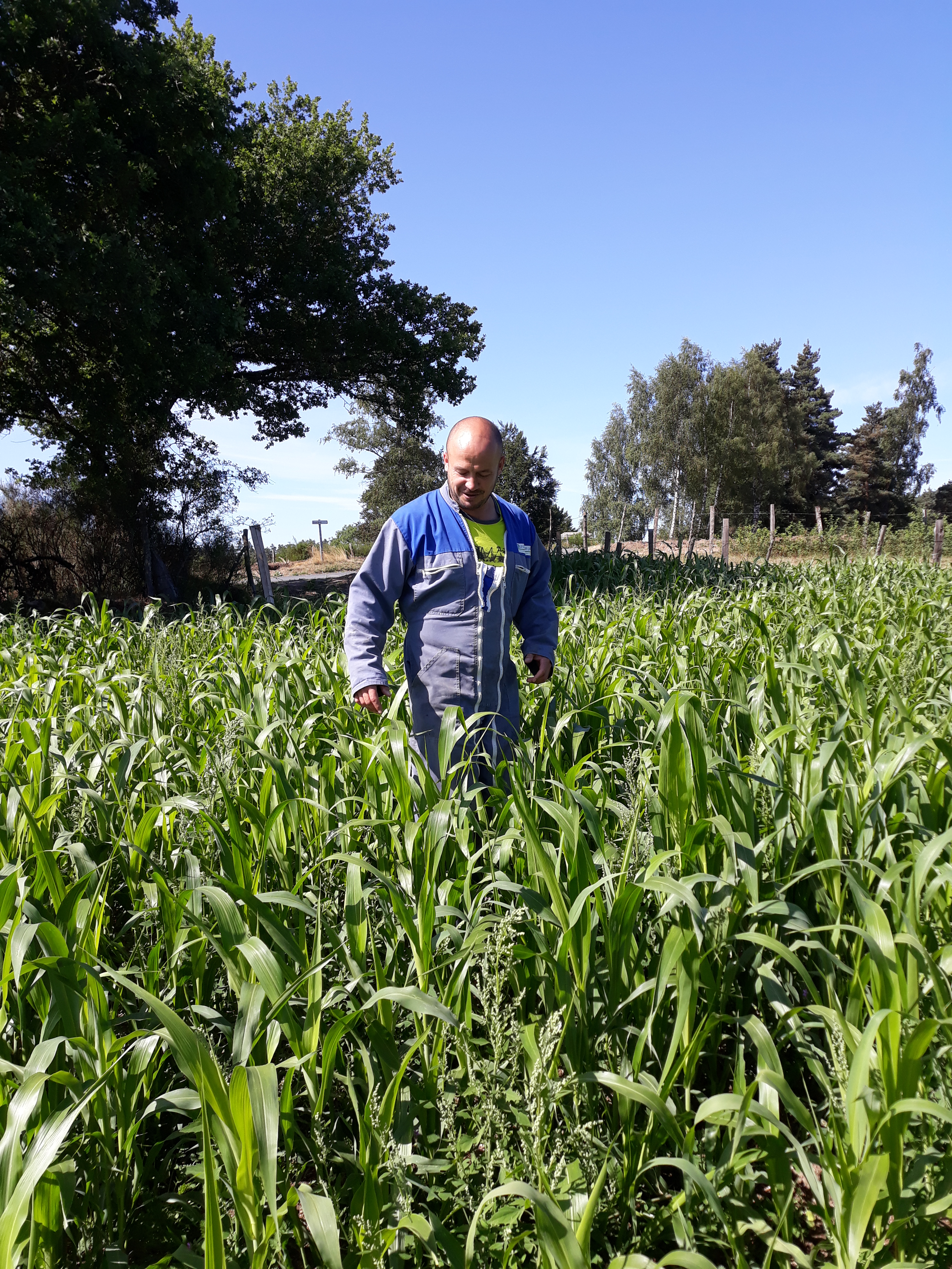 Après avoir enrubanné le méteil, le sol restait nu jusqu'à l'automne pour une nouvelle céréale. Au lieu de laisser le sol nu, autant qu'il produise ! En plus, un sol nu est une source à mauvaises herbes. C'est pourquoi, nous avons essayé le Moha + trèfle d'Alexandrie. Le Moha pour la quantité et sa capacité à pousser en condition sèche et le trèfle pour apporter un peu de protéine.