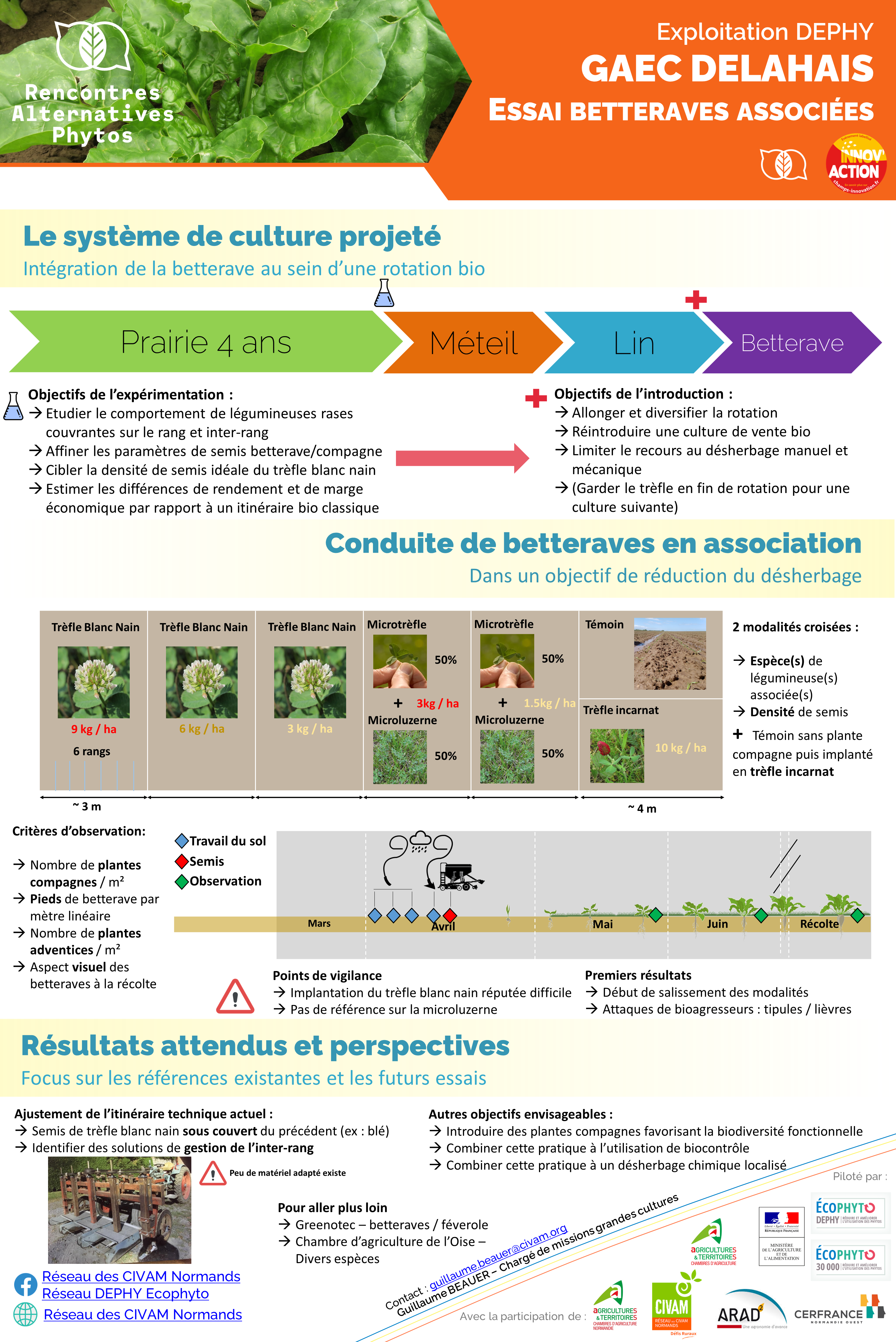 Le Réseau des CIVAM Normands accompagne les agriculteurs dans leur transition de système par l'adoption de leviers permettant de renforcer l'autonomie, la résilience et la durabilité globale de leurs fermes. Sur le secteur du Pays de Caux, l'enjeu particulier de la préservation de la ressource en eau a clairement été identifié en tant qu'axe de travail collectif et individuel de la structure. Sur les thématiques cultures, nous accompagnons donc actuellement une quinzaine d'agriculteurs en suivi individuel et animons deux groupes d'échange ECOPHYTO (dont le groupe DEPHY Pointe de Caux). Derrière cet enjeu, il y a aussi une volonté et une nécessité d'accompagner les agriculteurs pionniers dans la mise en place de nouveaux leviers innovants, valoriser leurs efforts et reconnaitre leur statut de "paysans chercheurs". Par son envergure et ses objectifs, le Réseau DEPHY répond à ces besoins.