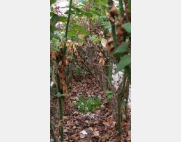 Les cosses de sarrasin ont été épandues dans les rangs de culture pour servir d'habitat à la faune auxiliaire introduite et spontanée.