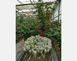Les plantes de service en place sont : l'Inule visqueuse aux abords de la serre et le Lobularia dans les rangs de culture.
