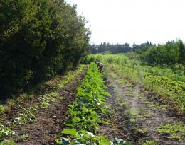 En maraîchage: adventices bien maîtrisées par un travail du sol superficiel, des rotations et des apports de broyats. En verger : travail en mode sandwich sur le rang, limitant l'herbe sur le rang; inter-rang en enherbement spontané |