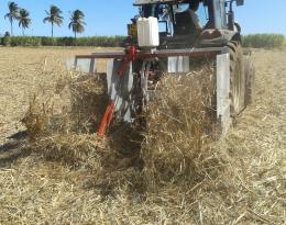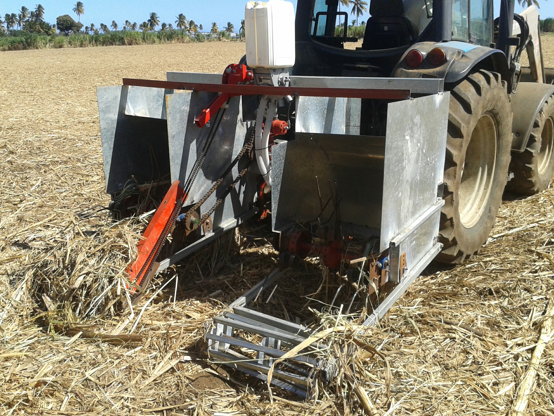 Le système testé consiste à travailler mécaniquement la paille, en la soulevant, la retournant. Deux types de travail mécanique de la paille sont testés : andaineur et faneur. Le principe d'andain, consiste à concentrer la paille de l'interrang sur le rang de canne et de voir si cela limite la levée des adventices. Le principe du faneur est tout simplement de remuer la paille de l'interrang en s'assurant qu'elle retombe au même emplacement.
