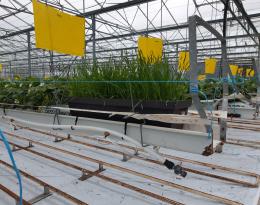 Le site pilote sélectionné est spécialisé dans la culture hors-sol de fraises précoces en serre verre chauffée. Ce type d'abri, relativement étanche, favorise normalement peu les échanges avec l'environnement proche. On peut néanmoins remarquer des pressions récurrentes de divers bioagresseurs d'importance économique, comme les pucerons et les acariens tétranyques. A contrario, les auxiliaires indigènes sont assez peu présents au sein des cultures sur la période printanière, leur action actuelle ne permet pas de limiter les interventions de contrôle.