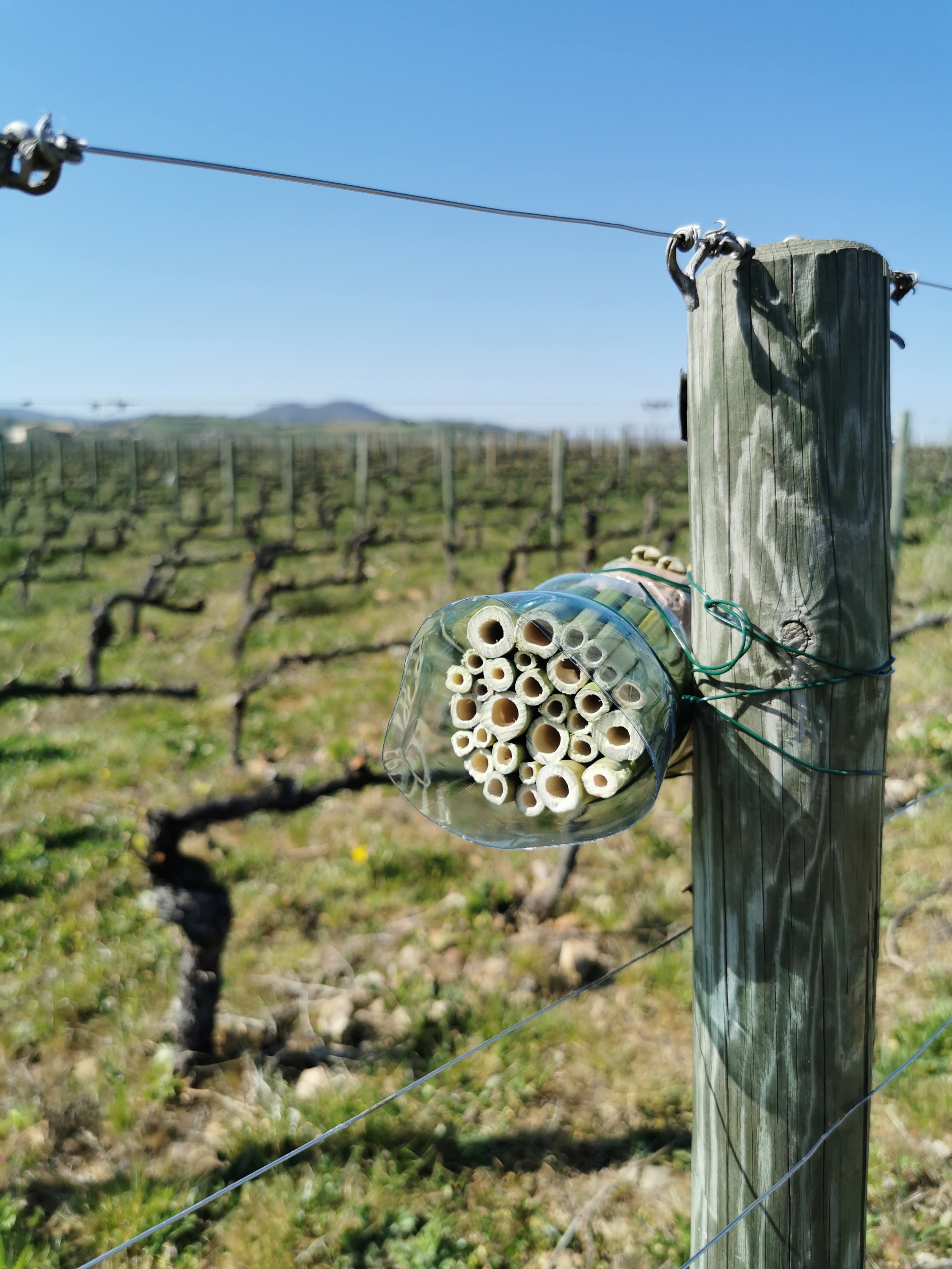 Néanmoins, nous avons installé deux nichoirs à abeilles sauvages ainsi que deux planches de bois afin de favoriser certaines espèces d'insectes rampants. Ces dispositifs s'intègrent dans le dispositif de l'Observatoire agricole de la biodiversité dont le domaine est site de démonstration.