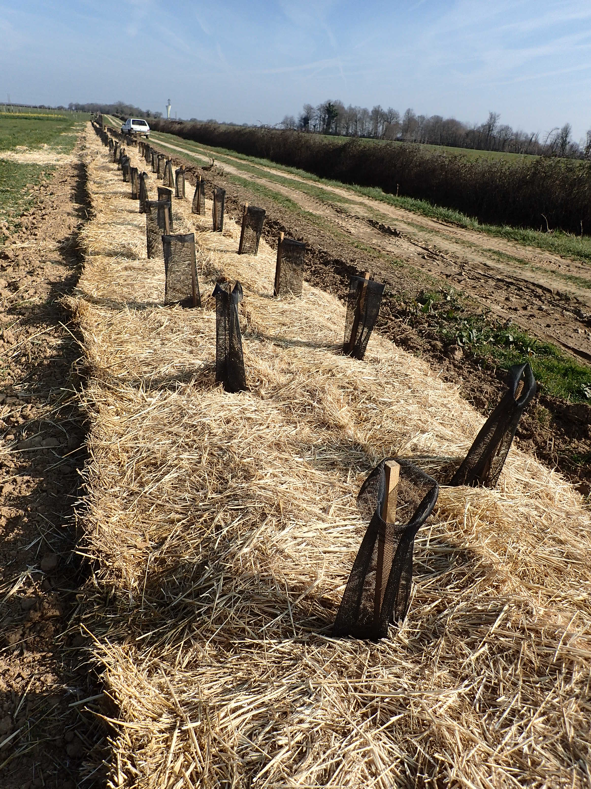 Une haie multi-espèces et multi-strate borde l'essai sur 3 faces.