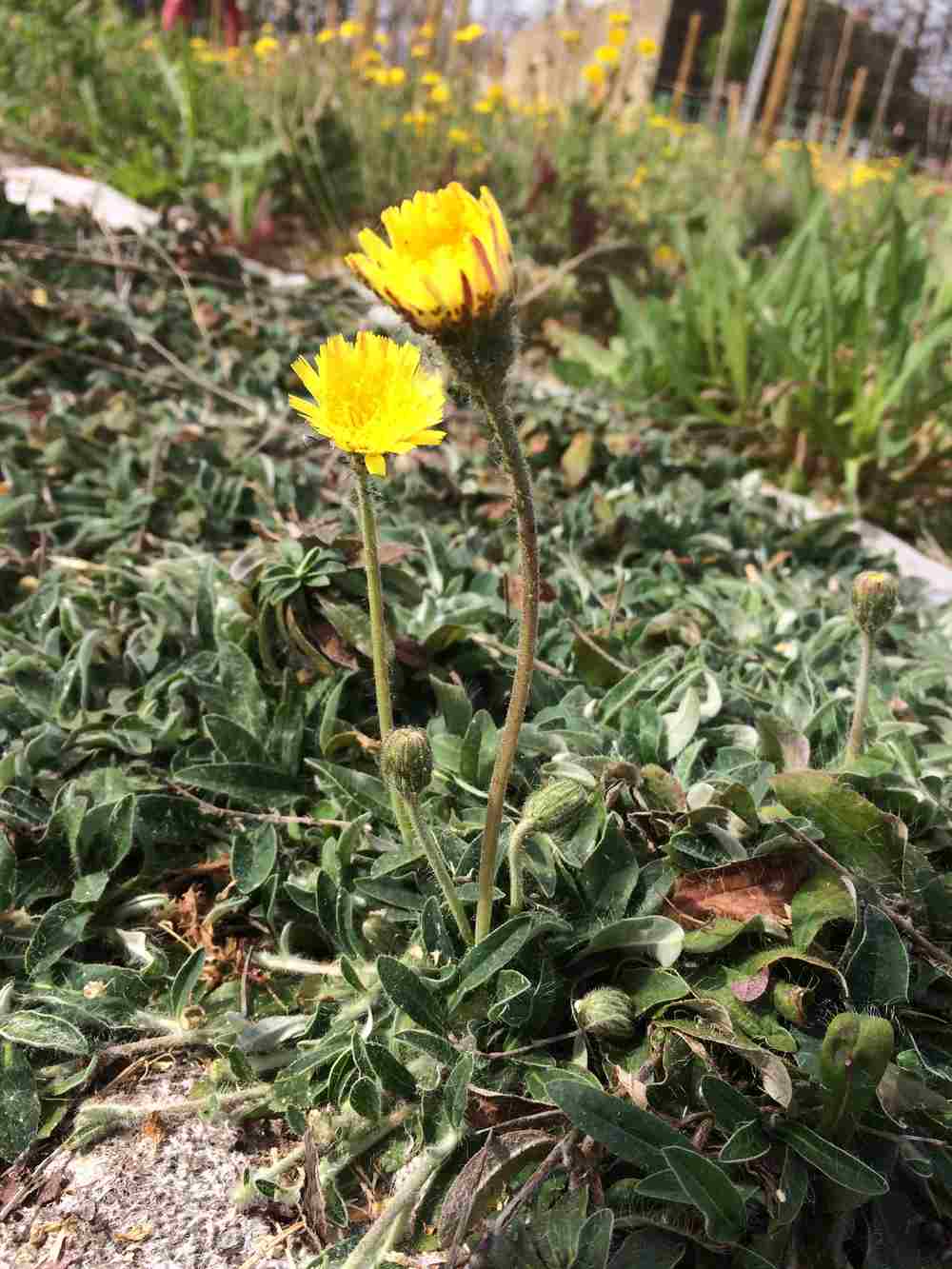 Mise en place : opération longue et coûteuse mais si bonne implantation : gain de temps (réduction intervention mécanique) Hétérogénéité de l'implantation + évolution du salissement : bonne implantation (formation d'un tapis) sur certaines zones mais d'autres développements d'érigérons et ligneux. Gestion : pioche mais abîment la piloselle + envisager une tonte (tondeuse inter-cep ou débrousailleuse) mais intervention plus longue et coûteuse |