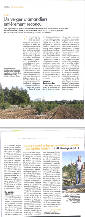 Ces travaux de recherche constituent le premier pas vers un verger d'amandiers plus performant en termes de production mais aussi en termes de respect de l'environnement. En effet, un programme, nommé ELZEARD s'est appuyé sur le concept "Innovation" de l'étude REVATRA pour proposer un verger en haie fruitière envisagé comme plus performant. Les arbres sont plantés à 5 m x 3 m avec une hauteur attendue de 3,50 m. Porte greffe vigoureux et maitrise de la vigueur sont obligatoires. La haie permet la pose du filet et les premiers résultats ont montré son étanchéité sur Eurytoma amygdali. Des essais complémentaires sont envisagés pour étudier l'effet barrière du filet sur d'autres insectes dont Monosteira unicostata qui se développe en cas de fortes chaleurs. En 3ème feuille, le rendement a été plus élevé que la modalité témoin en gobelets à 6 m x 6m.