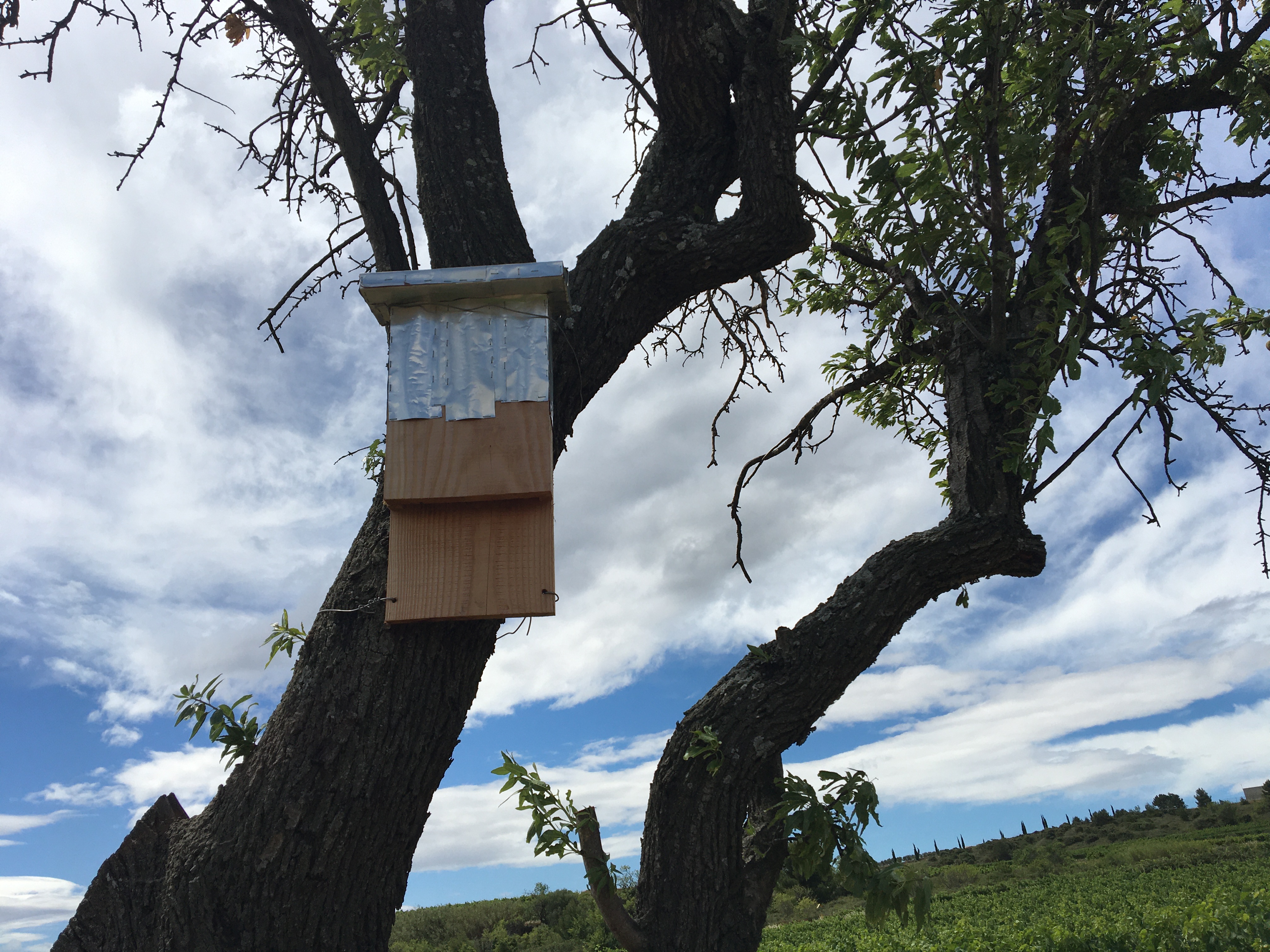 Ils ont ainsi appris à dresser l'inventaire des infrastructures, corridors écologiques favorables aux chauve- souris et obtenus des conseils pour la pose d'un abri. Une visite sur site leur a permis d'estimer s'il y avait présence ou non de chauve-souris dans les bâtiments et de créer/améliorer les conditions propices à leur installation naturelle afin des les intégrer dans la stratégie de lutte contre les ravageurs (vers de la grappe, cochylis, cryptoblabès...) de l'exploitation agricole.