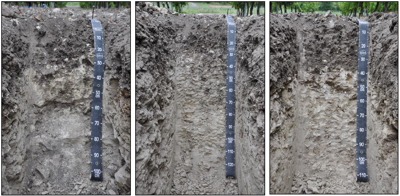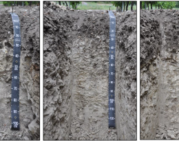 Le sol se caractérise par une profondeur faible à moyenne (30-60 cm). Il est très argileux sur un sous sol de calcaire plus ou moins altéré. Les racines sont majoritairement présentes dans les horizons superficiel et structural. Le ressuyage du sol est plutôt lent mais efficace (sols sains, sans signes d’hydromorphie). La parcelle présente des risques de saturation en eau et d’érosion en cas de fortes pluies. |