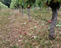 2020: 1 inter sur 2 ont été broyés en même temps que les sarments pour des raisons logistiques. 86 kg d'engrais (N10 P10 K25) ont été épandus sur l'ensemble de la parcelle. Aucun retard n'a été observé et l'objectif de rendement de 60 hl par hectare a été atteint.